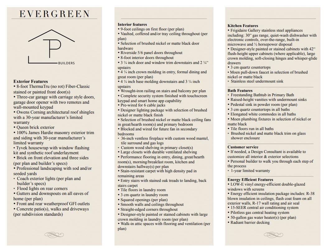 Welcome to Evergreen in Lakeland! This stunning new construction by TP Builders is designed for modern living with energy-efficient features and high-end finishes throughout. The home will showcase a queen brick exterior with James Hardie masonry trim, 8-ft ThermaTru front door & a three-car garage with carriage-style doors. Inside, enjoy 9-ft ceilings, vaulted and coffered designs, 8-ft interior doors, and a ventless gas fireplace. The kitchen features Frigidaire Gallery stainless appliances, 42” designer cabinets, soft-close drawers, and 3 cm quartz countertops. The primary suite offers a freestanding tub, tile shower with glass enclosure, and custom wood shelving in the closet. Additional highlights include a smart home security system, designer lighting, quartz in all baths and laundry, and R-38 attic insulation with foam-sealed exterior walls. Located in the sought-after Evergreen subdivision, this home blends timeless craftsmanship with modern convenience. Buy now & personalize!